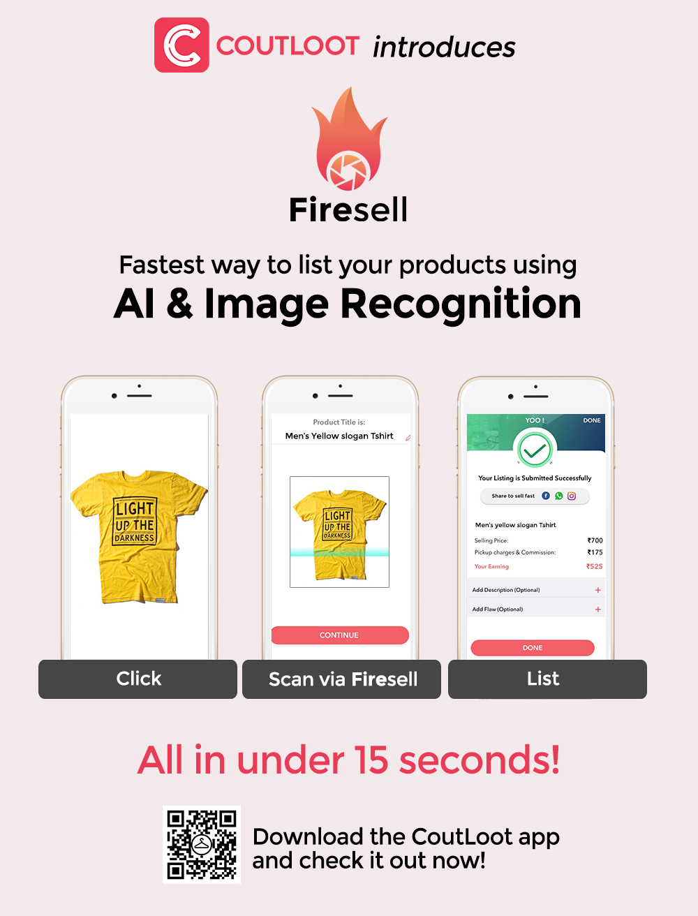 New Delhi, June 29, 2018:-With an intention to create a tech-experience like never before in India’s re-commerce industry, CoutLoot, the country’s most favourite fashion re-commerce platform has created and launched a revolutionary AI and Image Recognition-based selling module on its app called Firesell. The intelligent addition will enable its user to list any product on the platform within a few seconds without typing anything at all.