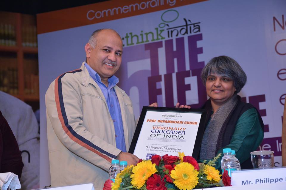 December 13, 2017, New Delhi: Dr. Rupamanjari Ghosh, Vice-Chancellor of Shiv Nadar University was felicitated as the Visionary EduLeader of India by ‘Re:think India’, a nationalist think-tank which catalyzes multi-faceted conversations within various thematic sectors spanning Academia, Industry and Government. Sri Pranab Mukherjee, former President of India, was present at the felicitation ceremony. Dr. Ghosh was recognized for her contribution in championing a learner-centric higher education ecosystem at Shiv Nadar University, anchored research and innovation, flourishing on progressive interdisciplinary, driven by an outstanding faculty, and supported by national and international academic partnerships.