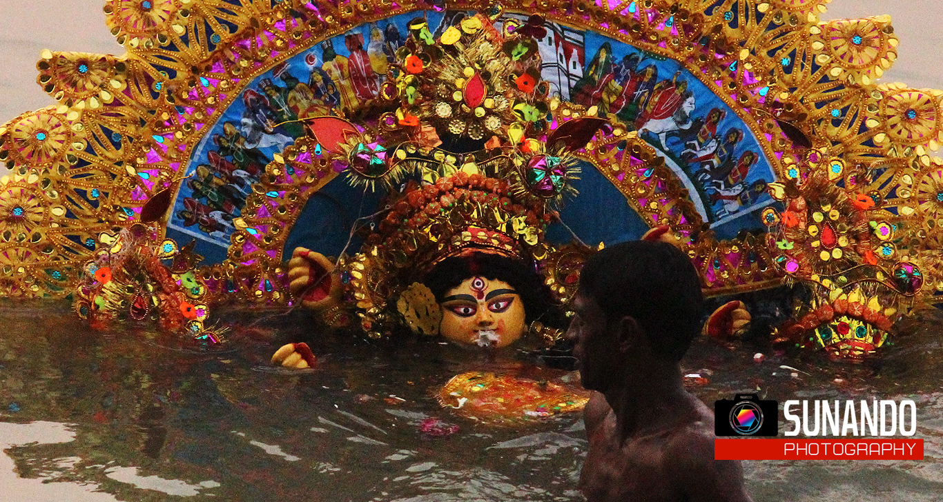 While this journey I also realized that immersions are done in several different ways. “Bonedi Families” has their own specialties. I find it very emotional to click teary eyed devotees bade an emotional farewell as idols of goddess Durga is immersed in Ganga.
