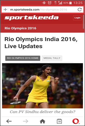 operaminiWorried about catching up on your favourite sport this season and going overboard with your data bills? Good news is- Opera Mini comes to your rescue as it can keep you updated about your favourite sports like Badminton, Wrestling, Boxing etc while you are on the move. With a data saving option in Opera Mini, the added benefit is that you can surely save on your mobile data and have a buffer free experience as well. Opera Mini compresses content before it reaches you. So you can also track your favourite players, keep a tab on the medals tally and support them with social media updates all without losing on your data. With Indian players putting in their best of efforts at Rio, it definitely calls for support from their countrymen. So cheer for your favourite player to ensure they perform their best. Our nation’s pride PV Sindhu is up to compete for a gold tonight!! Stay tuned to her game with Opera Mini and ensure she wins a gold medal 🙂